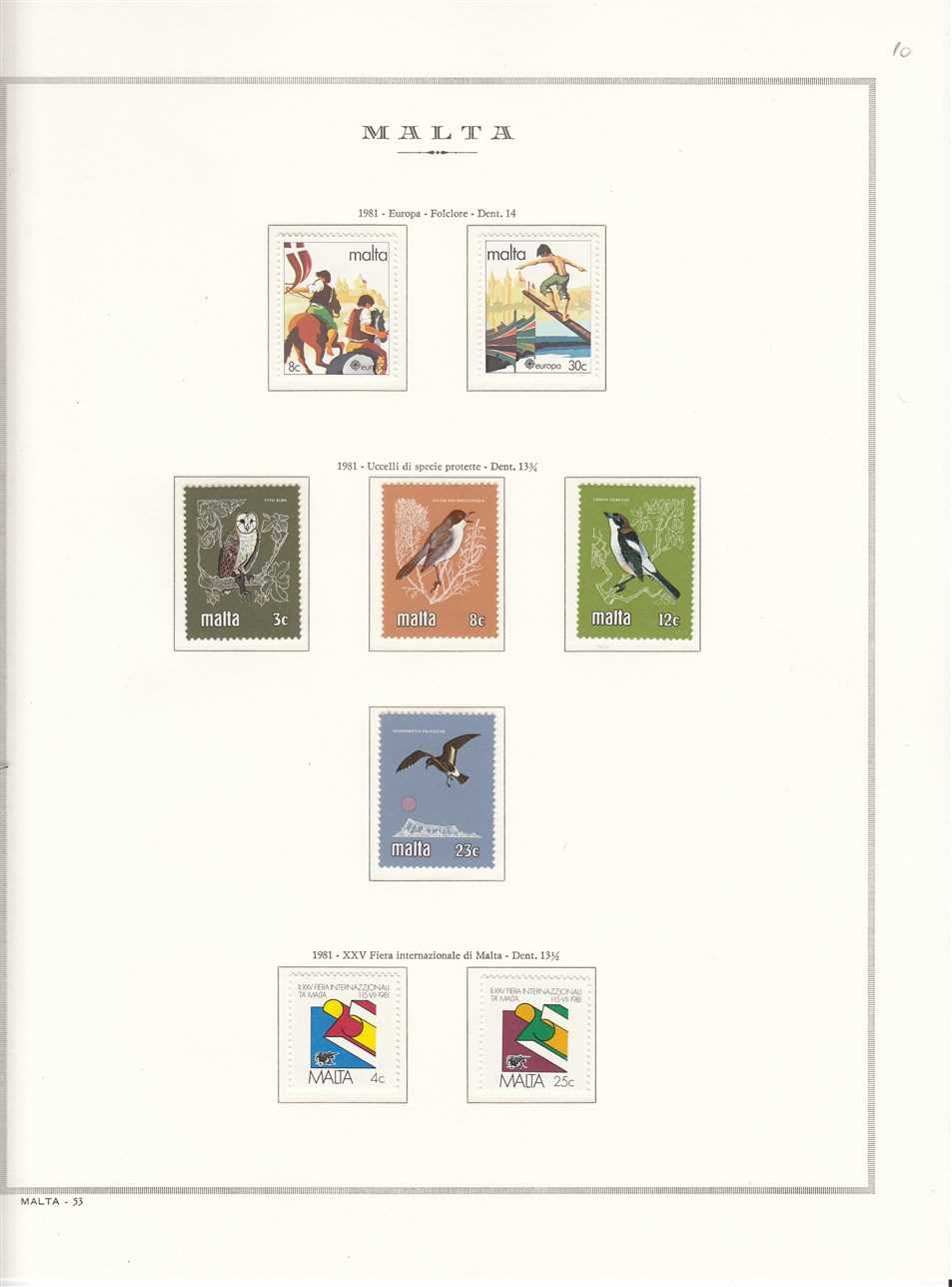 MARİNİ ALBÜM SAYFASINDA MALTA HAVİTLİ TAM SERİ MNH PULLAR
