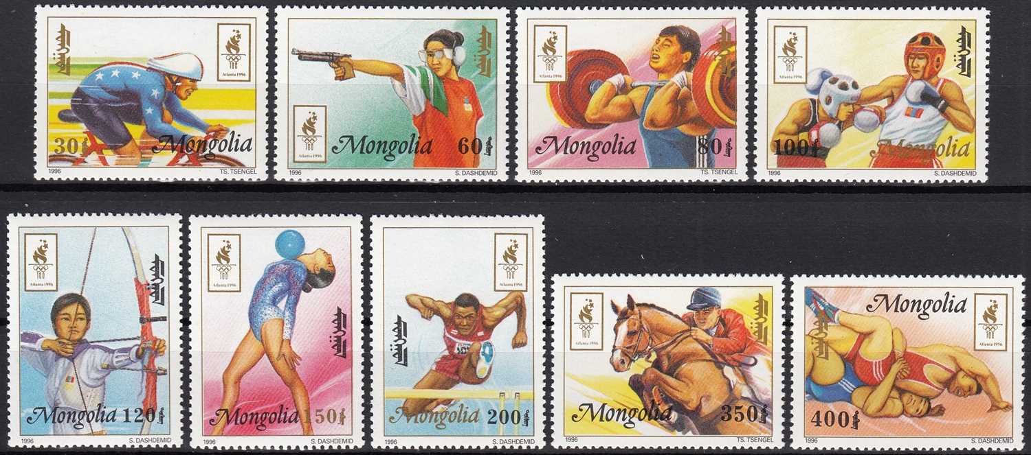 MOĞOLİSTAN 1996 OLİMPİYAT OYUNLARI - ATLANTA, ABD OLYMPHILEX 96 ULUSLAR ARASI PUL SERGİSİ TAM SERİ MNH