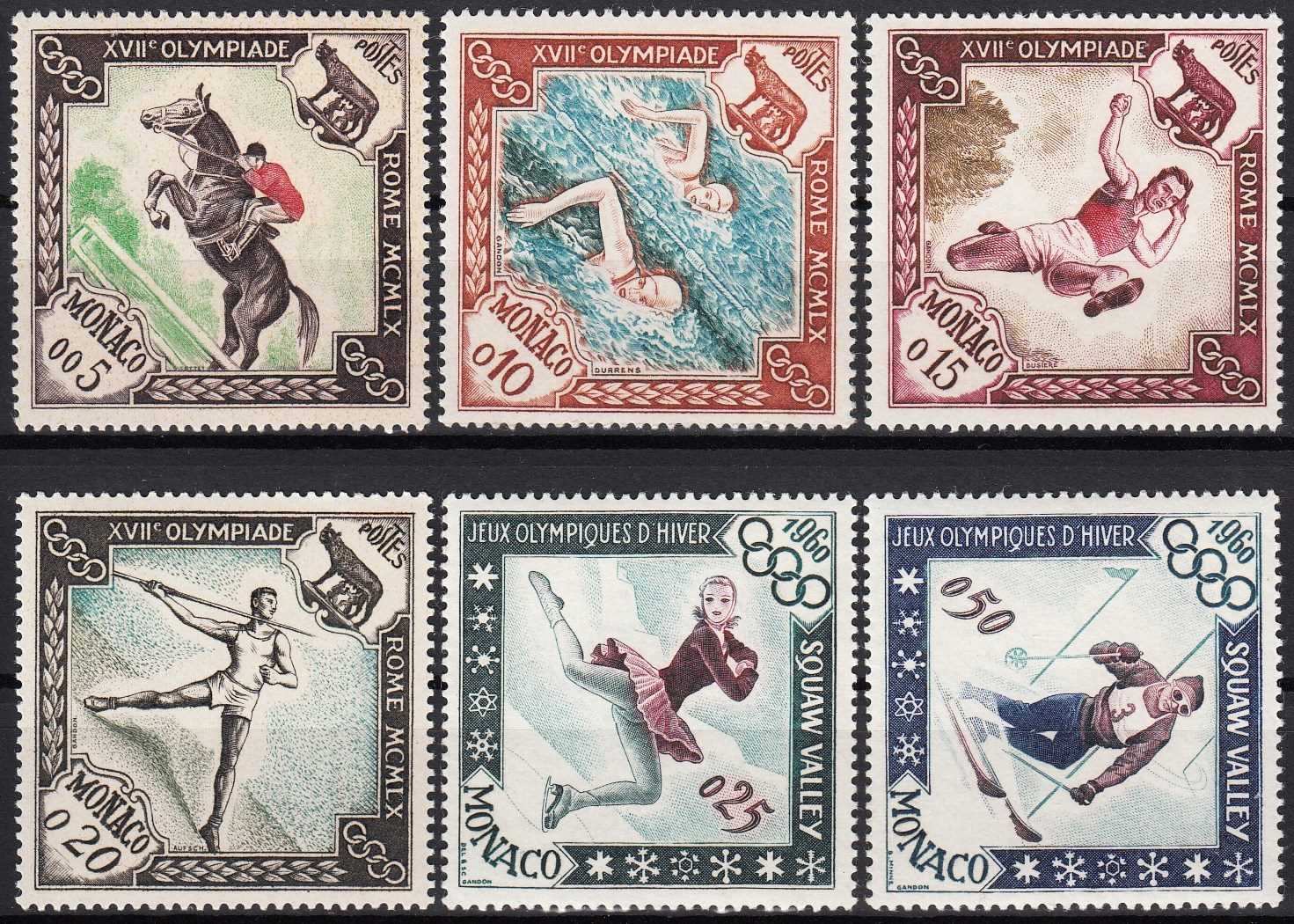 MONAKO 1960 YAZ VE KIŞ OLİMPİYAT OYUNLARI - ROMA, İTALYA VE SQUAW VALLEY ABD TAM SERİ MNH