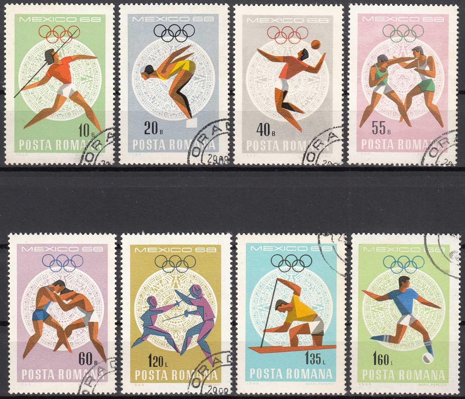 ROMANYA 1968 OLİMPİYAT OYUNLARI - MEKSİKA İLK GÜN DAMGALI ZAMKLI TAM SERİ