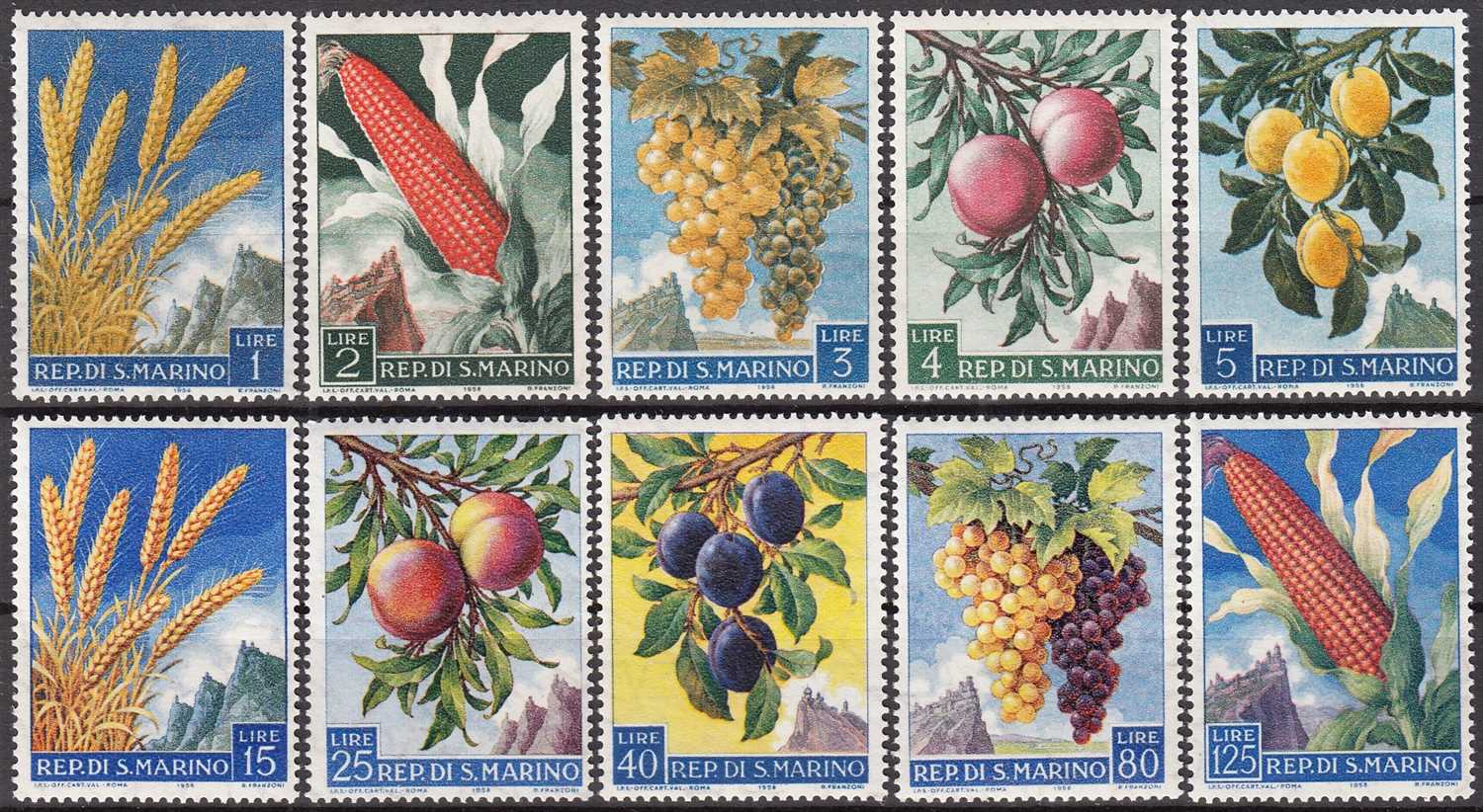 SAN MARİNO 1958 MEYVELER TAM SERİ MNH