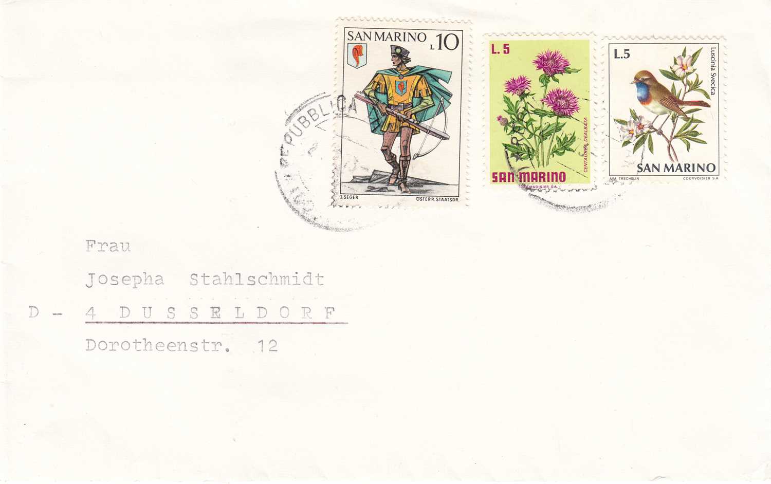 SAN MARİNO 1973 POSTADAN GEÇMİŞ ZARF