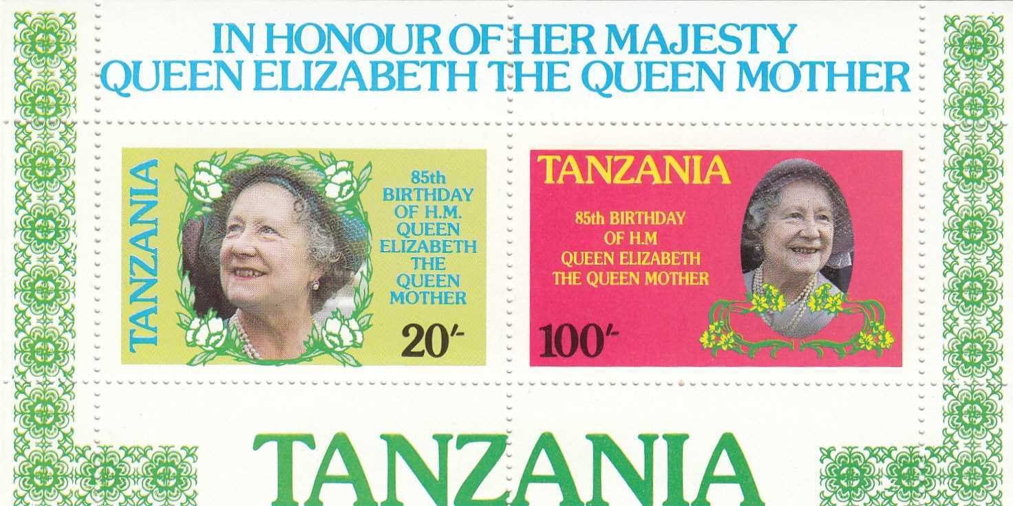 TANZANYA 1986 KARAYİPLERDE KRALİÇE II. ELİZABETHİN ANNESİNİN ZİYARETİ HATIRA BLOK (124 x 62 mm) MNH