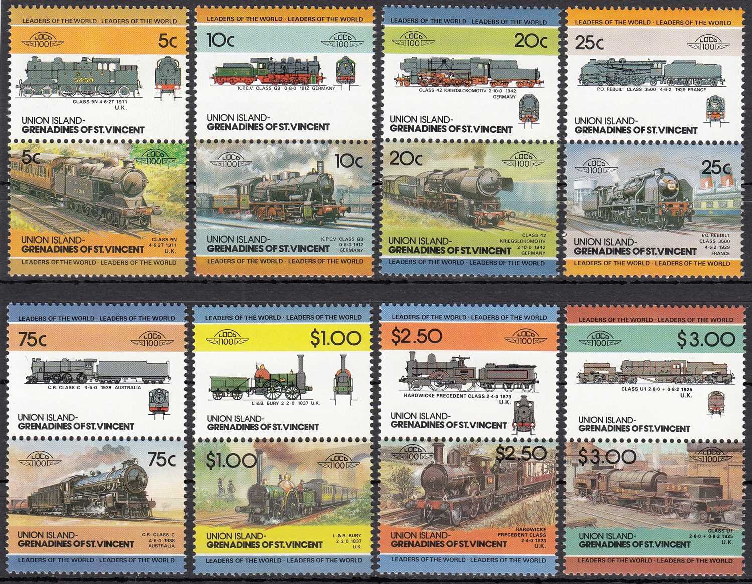 UNİON ADASI (GRENADİNES ST. VİNCENT ) LOKOMOTİFLER TAM SERİ MNH
