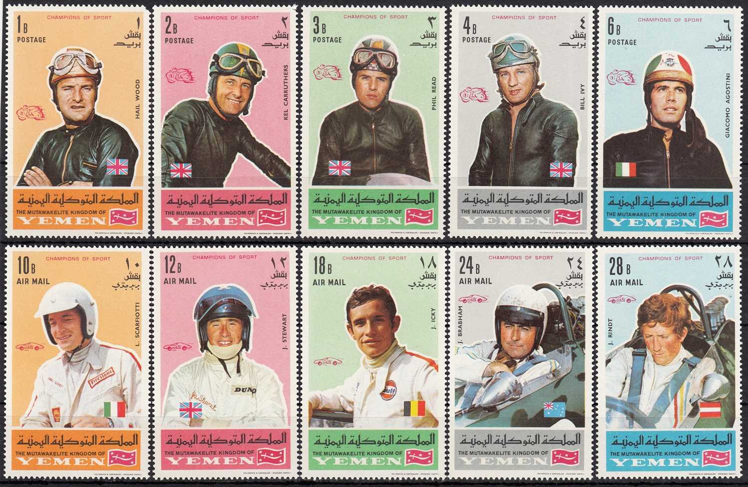 YEMEN KRALLIĞI 1969 MOTOSİKLET VE YARIŞ ARABASI SÜRÜCÜLERİ TAM SERİ MNH (BÜYÜK FORMA PULLAR)