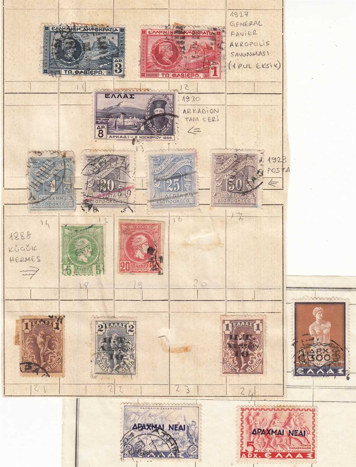 YUNANİSTAN KLASİK DAMGALI ŞARNİYERLİ PARÇA PULLAR