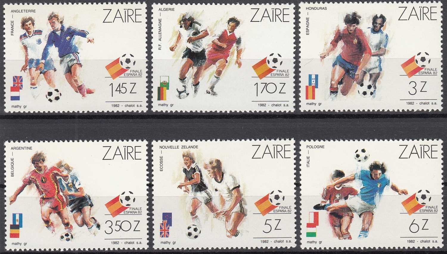 ZAİRE (KONGO DEMOKRATİK CUMHURİYETİ) 1982 DÜNYA FUTBOL ŞAMPİYONASI - 2 İSPANYA TAM SERİ MNH