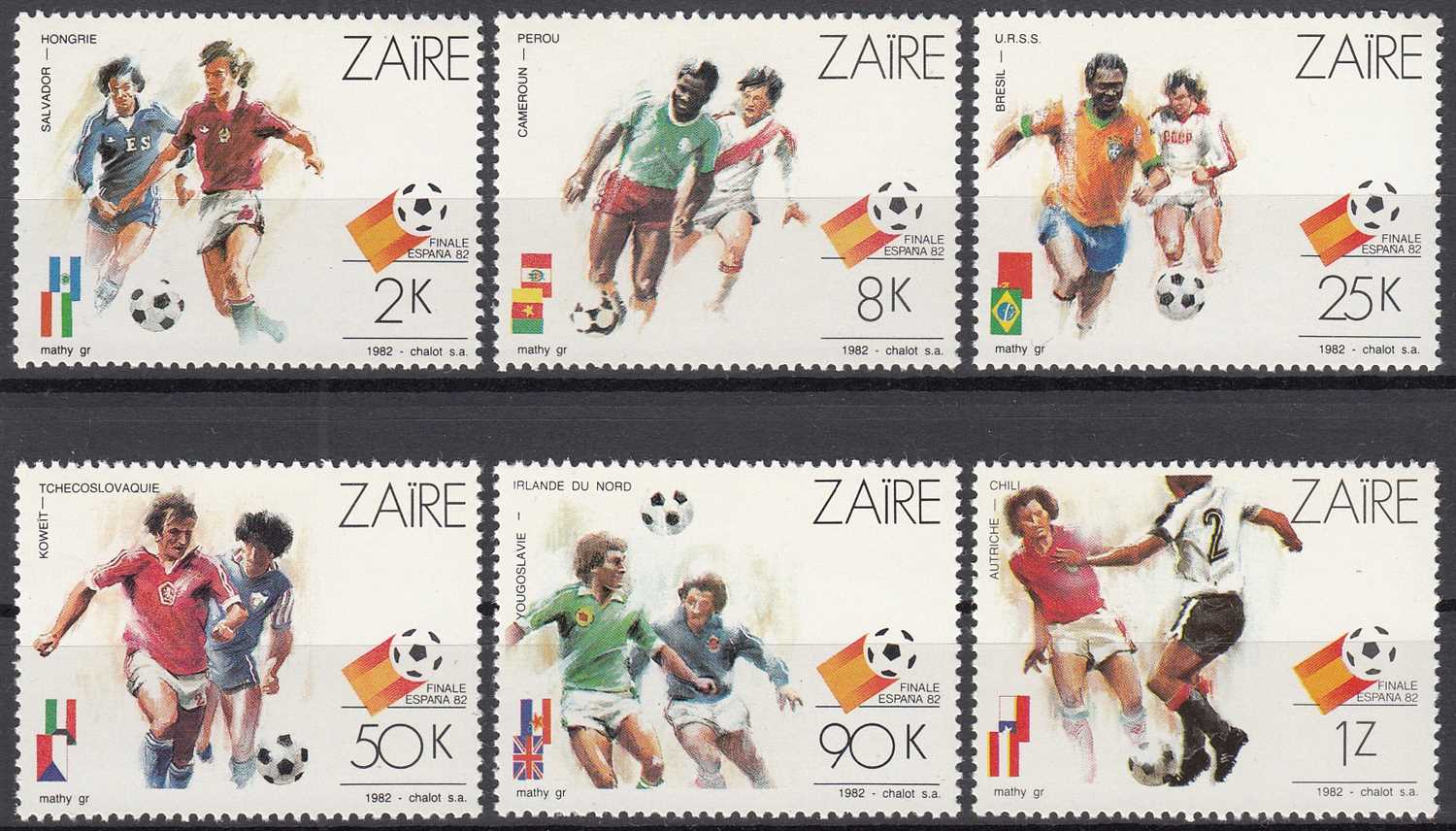 ZAİRE (KONGO DEMOKRATİK CUMHURİYETİ) 1982 DÜNYA FUTBOL ŞAMPİYONASI İSPANYA TAM SERİ MNH